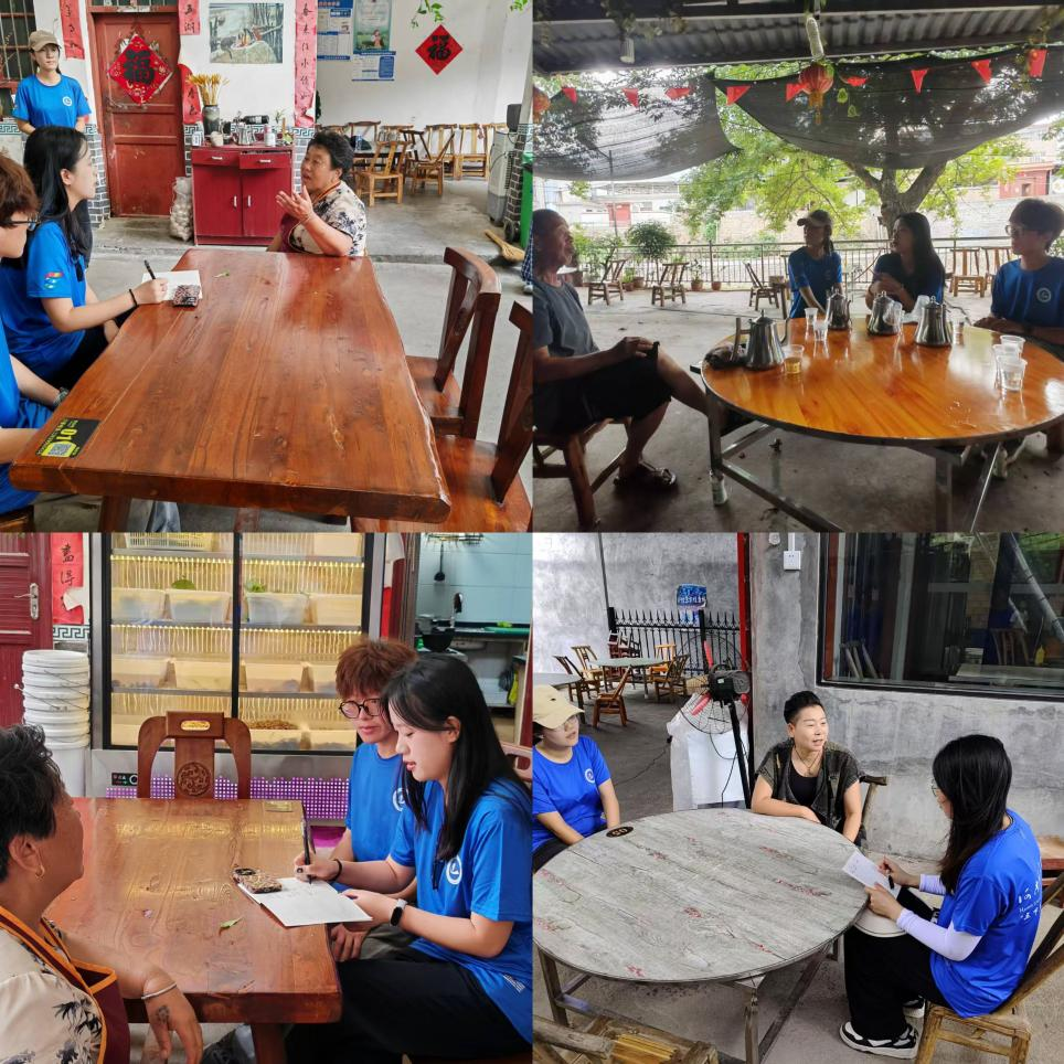 实践首日,管理学院师生团队与驻村书记展开工作交流。驻村书记系统介绍了村内教育资源配置、特殊群体保障现状,以及张沟村特色产业发展情况,重点就农家乐运营瓶颈、留守儿童关爱需求、空巢老人生活保障等问题进行详解,为实践团队精准对接乡村需求提供决策参考。随后实践团分为两组行动。“青春织锦绣,乡韵焕新生”实践团深入乡村旅游一线,对村内农家乐开展业态普查,通过实地走访、座谈交谈等方式,掌握经营规模、客源流量等情况,团队依托旅游管理专业知识,从品牌打造、服务升级、客源拓展等维度与经营者展开专业研讨,为乡村旅游发展建言献策。“启智送暖,播爱扬帆”实践团聚焦民生痛点,走访留守儿童家庭与空巢老人住所,与老人亲切交谈,详细询问他们的身体状况、生活需求和困难,认真记录老人们生活方面的诉求,并围绕后续工作安排展开充分研讨。