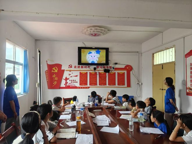 队员们通过生动形象的视频案例、趣味问答等形式,重点向儿童讲解阐释“六不一会”内容(“六不一会”,即:不私自下水游泳、不擅自与他人结伴游泳、不在无家长或教师带领的情况下游泳、不到无安全设施和无救援人员的水域游泳、不到不熟悉的水域游泳、不盲目下水施救,学会基本的自护、自救方法)。孩子们认真聆听,积极参与互动,在轻松的氛围中加深对防溺水知识的理解与记忆。随后,队员们入户深访,通过发放宣传资料、面对面讲解等方式,向村民宣传防溺水知识,普及溺水后的急救措施。访问中,队员们进一步提醒村民加强对家中儿童的监管,特别是在暑期也是汛期的关键时段,避免儿童独自靠近危险水域。