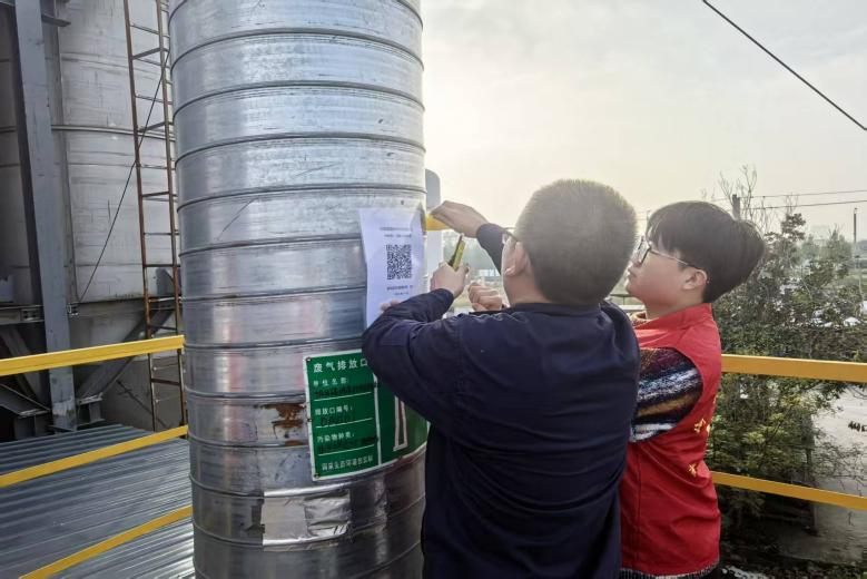 在实操帮扶环节,团队聚焦企业排污口规范化痛点,依托学院在环境工程领域的实操指导能力,现场协助规范排放口标识,完成大气、水排污口二维码标识的标准化张贴工作,实现企业所有排污口二维码标识“全覆盖”,进一步提升排污管理透明度。此外,团队成员还与企业负责人、环保管理人员围绕排污许可执行、环境统计填报、信息公开规范及提标改造项目中的生态环境问题展开深入交流,结合专业知识开展“面对面问诊”,排查潜在问题,当场为企业解疑释惑,提供针对性技术建议。