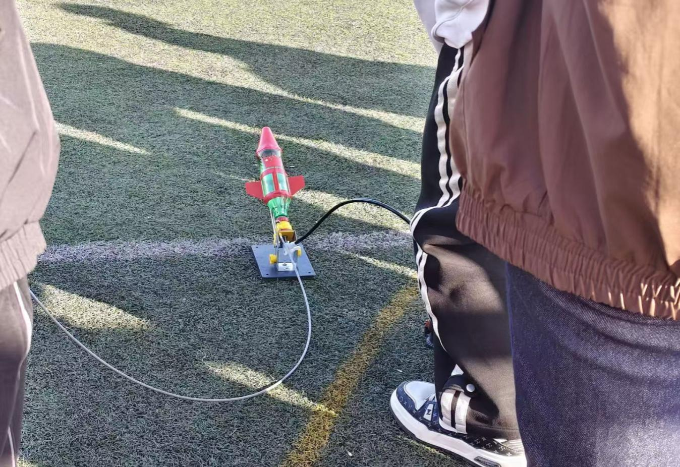 比赛现场的氛围热烈,伴随着阵阵欢呼与志愿者的指导,一支支独特具有创新的水火箭依次升空。各参赛队伍带来的水火箭独具匠心,从选材到组装,再到最后的装饰,无不凝聚着同学们的智慧与汗水。队员们默契配合,灌装水液,固定箭体,改变压强,确保有充足的压强,每一个动作都有条不紊。随着压强的增大与指令的下达,水火箭裹着水花直冲蓝天,在空中划出优美的弧线,引起阵阵喝彩。有的参赛队伍凭借适当的压力与精准的发射角度,飞行距离远超预期。