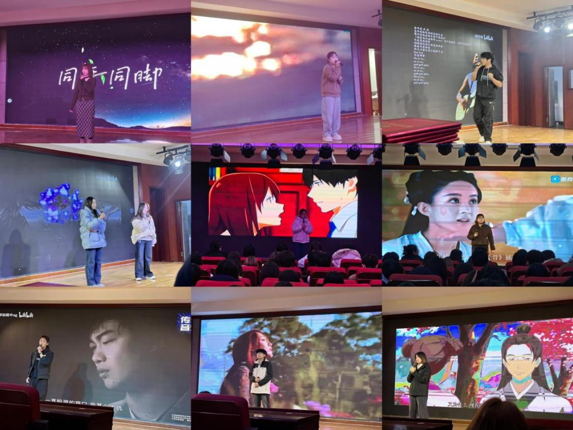来自不同年级的十二位选手用各具特色的嗓音,唱响心声。他们或以质朴深情的民谣浅吟低唱,娓娓道来;或以时尚动感的流行乐曲点燃全场,节奏飞扬;亦不乏默契搭档的和谐合唱,声部交织间尽显配合之妙。舞台背景的大屏画面则与歌声情绪精密呼应,为每段表演赋予了独特的视觉叙事与沉浸氛围,极大提升了演出的感染力与艺术层次。评委们认真考量每一首歌曲的呈现,从音准、情感、舞台表现等维度细致打分。现场观众的掌声与欢呼声此起彼伏,将比赛的热烈氛围一次次推向高潮。比赛最终评选出十佳歌手。