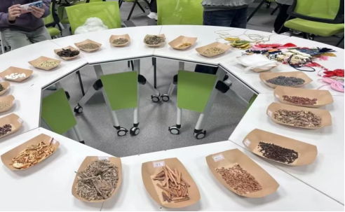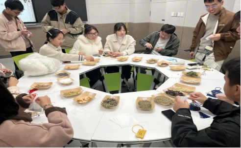 本次活动以同学们制作香囊为核心,现场提前备好各类香料、囊袋及工具,氛围温馨有序。活动期间,协会成员化身“香囊向导”,讲解香料的化学奥秘——桂花芳樟醇调节神经、薄荷脑挥发性成分提振感官、艾草桉叶素镇静情绪,让同学们理解香气与情绪的化学关联;随后同学们选用适配挥发性成分释放的透气无纺布囊袋,搭配薄荷、桂花等香料,以多孔棉花固定(减少成分摩擦)完成香囊,最终手持作品合影,在草木香气中感受舒缓氛围。
