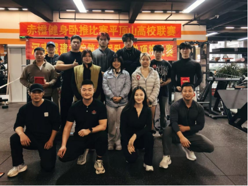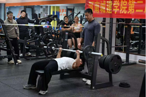 11月8日下午健身协会在赤橙健身房联合平顶山其他高校进行了卧推单项挑战赛。