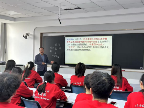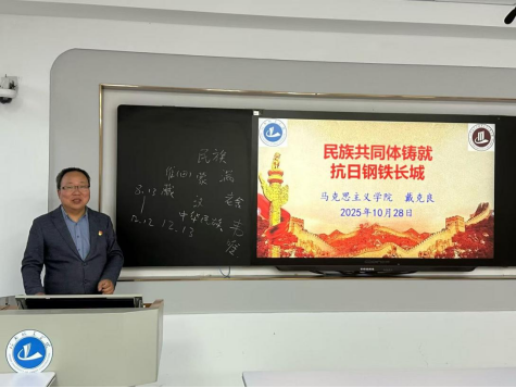 (通讯员 柴洁)河南城建学院第十五期青马班于2025年10月28日开展“民族共同体铸就抗日钢铁长城”主题教育,马克思主义学院德育教研室主任戴克良博士担任主讲人。