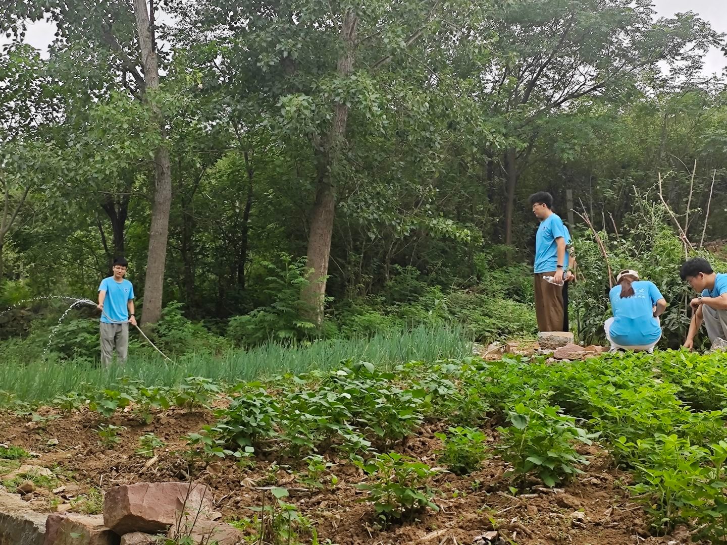活动中,实践团成员分成若干小组,深入村民的菜地里开展劳作。他们在村民的指导下,有序为蔬菜灌溉浇水,仔细拔除田间杂草,大家干劲十足,挥汗如雨,田间地头一派热火朝天的劳动景象。村民们对志愿者们的辛勤付出表示高度赞赏和由衷感谢,现场洋溢着和谐互助的浓厚氛围。通过身体力行的田间劳作,志愿者们不仅有效帮助村民缓解了农忙时节的部分劳力压力,更真切体会到了“粒粒皆辛苦”的内涵。